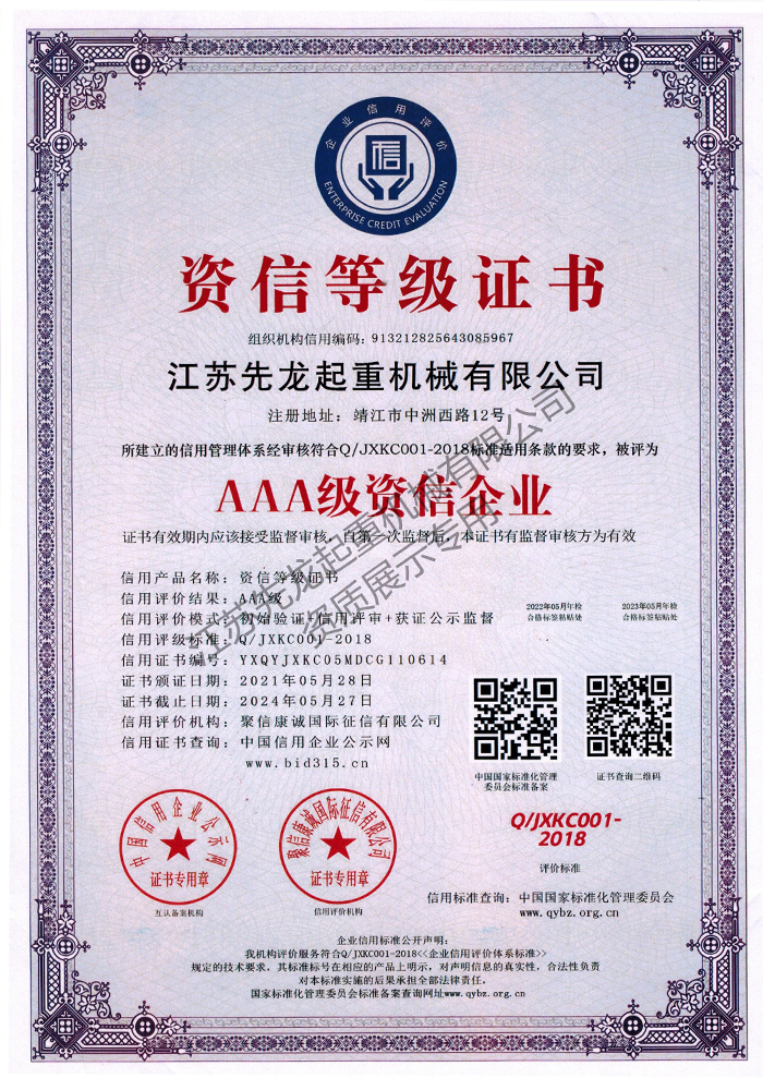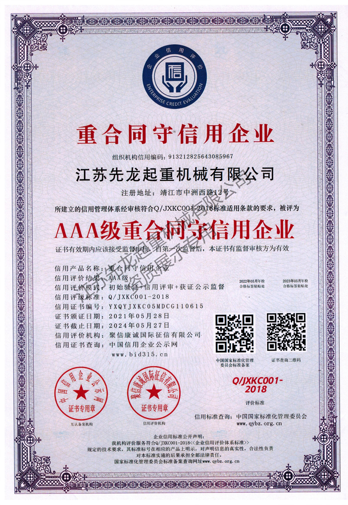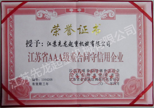 | 江苏省机械制造业第一品牌 | 江苏省AAA级重合同守信用企业 |