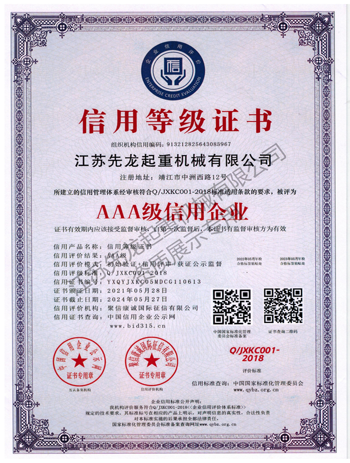 | 江苏省质量管理先进单位 | 江苏省质量放心用户满意AAA级诚信企业 |